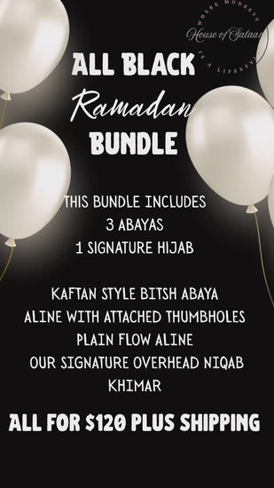 This BUNDLE COMES WITH 3 ABAYA STYLES & OUR SIGNATURE OVERHEAD NIQAB KHIMAR