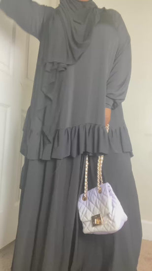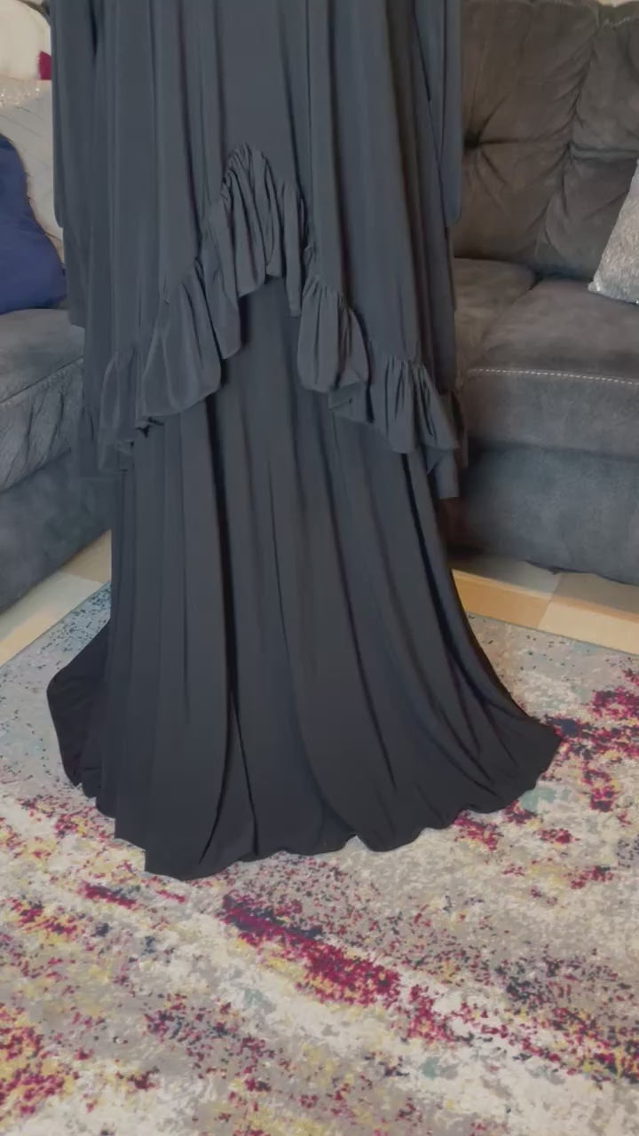 2 Pc Abaya with Ruffle over Top , comes with sleeveless Aline and Ruffle Shayla